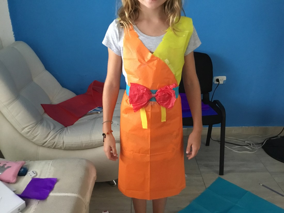 The next day was our first day of school and we had a teacher named Olga. We just learned things you would have in a house. Our homework was fun but hard. We drew our dream house on a piece of paper, then at school we made mini people and played in the houses with them but the hole thing had to be in Spanish. On Wednesday we learned new things and we went over the things we had done in the last couple days. The next day we learned how to say different jobs and did another little game. On Friday we made dresses out of paper.