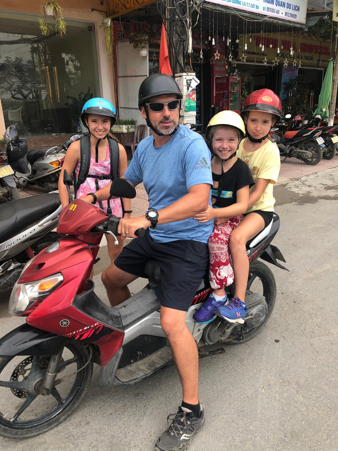 We found gratitude as we made our way through Southeast Asia. Our 2 weeks volunteering at Feeding Dreams school in Cambodia will stay with us forever. This was the most difficult stop of the year for me. I struggled in the midst of a poverty I had never seen before. Had the Cambodian government not tightened their laws around international adoption, the Mathias clan would have grown a few members. It was really difficult. I spent time looking after the health needs of the children, and participated in an immunization day at the school. I assessed a couple of elders in the community. Without the means to pay for healthcare, options for managing illness and trauma are limited or nonexistent. Despite all this, and while enduring a level of humidity that we had never felt before, the girls were able to identify that most of the children looked happy. All three girls wanted to make a difference for these children. They poured over lesson planning in the evenings and took their teaching duties very seriously. They assisted in handing out meals at lunchtime, recognizing that these were often the only meals the children would receive in a day.