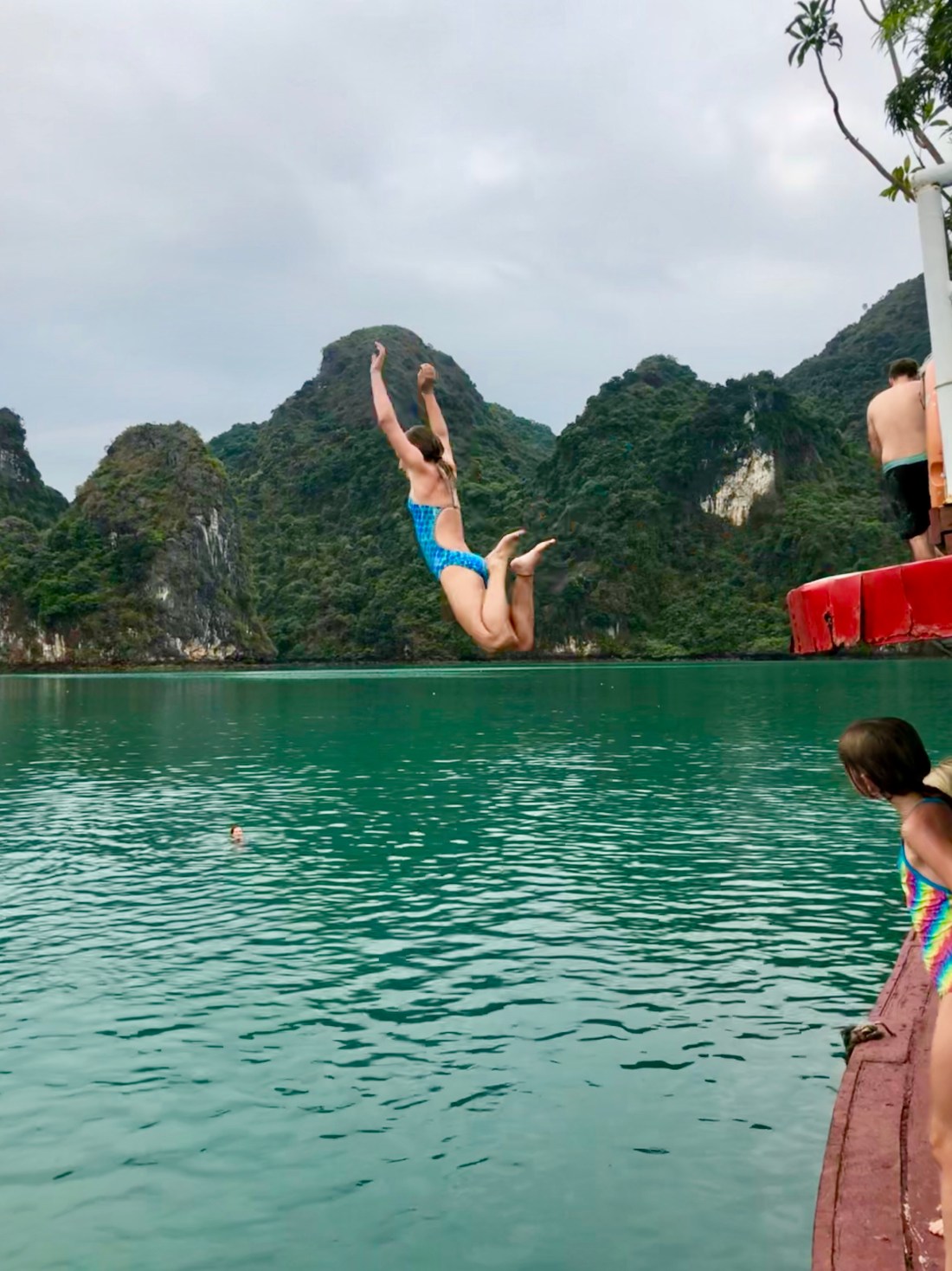 For dinner, we went to this really loud bar and we played a big round of our card game called” Five Crowns”. The next morning, we had to go so we took a selfie with the brothers who owned the hotel and then we took the boat back to Hai Phong. The views in Cat Ba were something I’d remember for a long time!