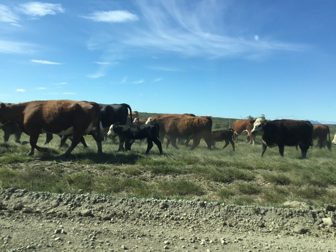 We saw a lot of animals just in “Torres del Paine” ( a huge park ) and we saw some very interesting ones too. On our drive there, we were stopped by a huge herd of cows, more than 400! We thought we would never get there and we were already late for our boat trip. It was so cute because there were baby cows!