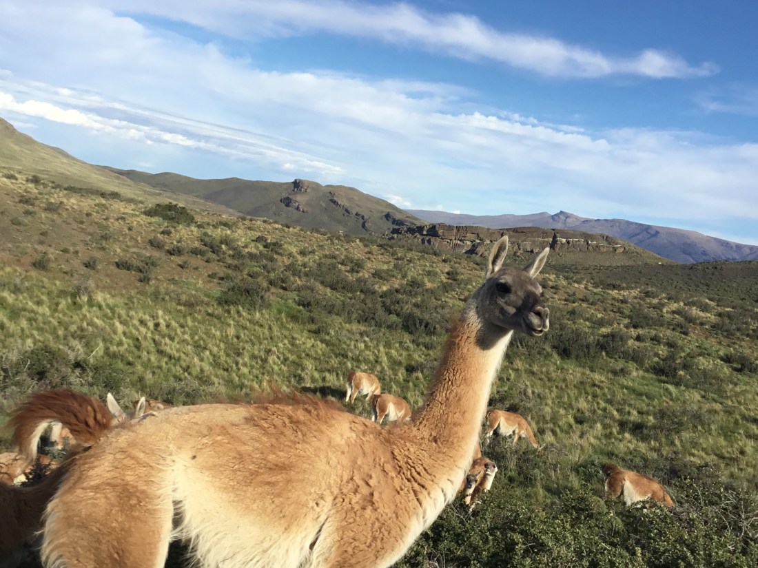 The animals we saw the most were guanacos, they had long necks and long legs. They looked like llamas. We had selfies with them and we had to stop for them a couple times to cross the road.