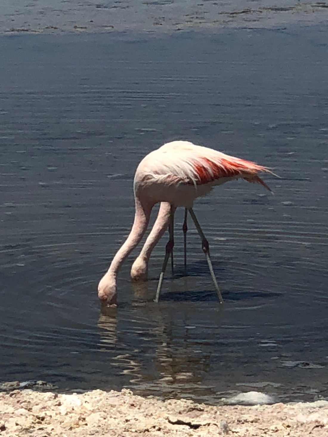 The things we saw in Atacama desert were amazing! There were so many animals that I had never seen and some were quite unexpected. The first animals we saw were flamingos, and they were so different. We stopped at a place where we learned all about them and then went for a walk. The flamingos had the most skinny legs in the world, they were the width of a branch and their necks were so long they didn’t even have to bend over to eat. Most of the birds were pink but the baby ones were grey. When they ate, it looked like they were dancing because they would keep their necks in the same spot, but their legs would walk in circles.