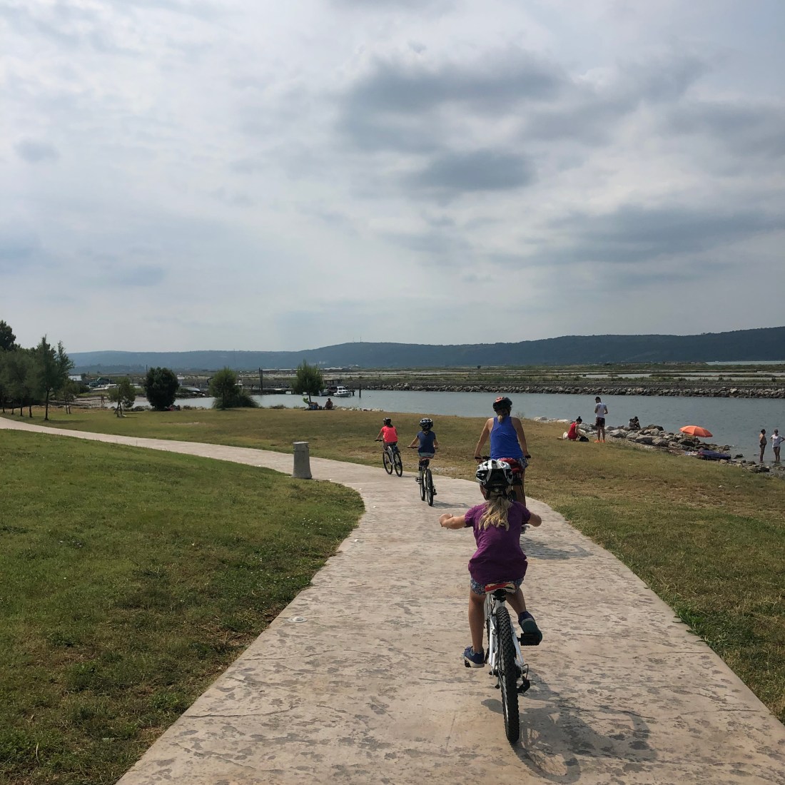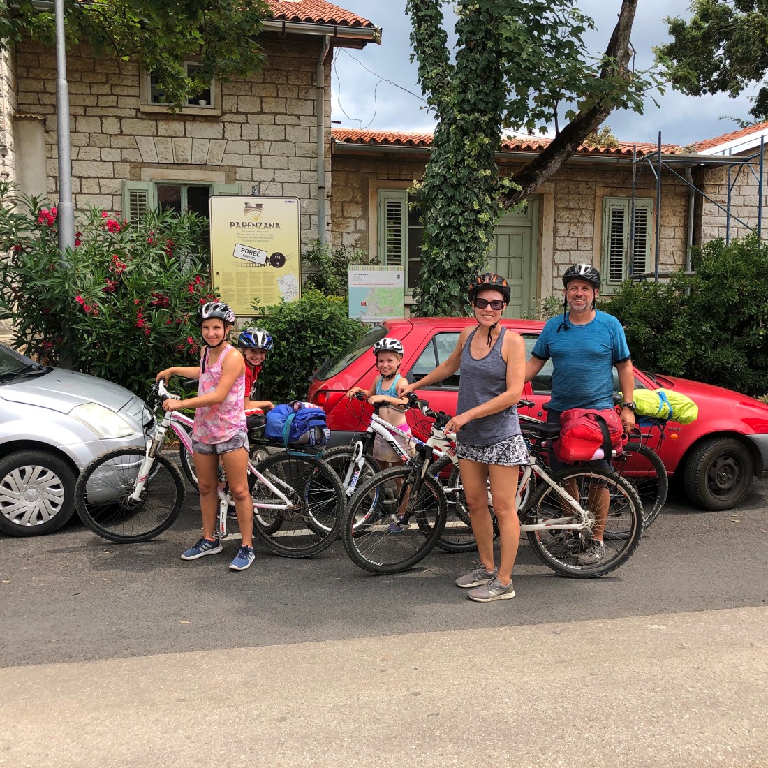 After a quick stop in Venice to share one of our favourite travel destinations with the girls, we knew we had a week to get to Zagreb. Big European cities can become tiresome for children, so we started searching for a more rural experience. Perhaps it was the thrill and success of the Camino that drove us to our next adventure, but when Steve discovered that there was an old converted railway turned biking trail that wove its way through Italy, Slovenia, and Croatia, we jumped into trip planning action. This adventure proved to be our most physically challenging experience of the year. For four days, we rode heavy mountain bikes through stunning countryside. The trail was challenging, at times single track and often loose gravel. We stopped along the way to jump in the ocean, marvel at views, and enjoy eating and wandering in the small towns we passed. The first night, I accidentally booked our accommodation on top of a mountain. The girls, exasperated, asked, “What part of ‘Panoramic Hostel’ did you not understand?” It was late in the evening when we eventually arrived. Days 2 and 3 were no easier, but equally scenic as we made our way across the Istrian Peninsula through Slovenia and into Croatia. Day four started with a 20 km climb before we coasted into our final destination, Porec, on the north western coast of Croatia. We had travelled 135km on our bikes and survived ‘mosquito mountain’, incredibly long days of riding, countless climbs, and Anna driving her bike off the side of a steep trail and landing in a thorn bush. We were exhausted and so completely proud of ourselves and each other.