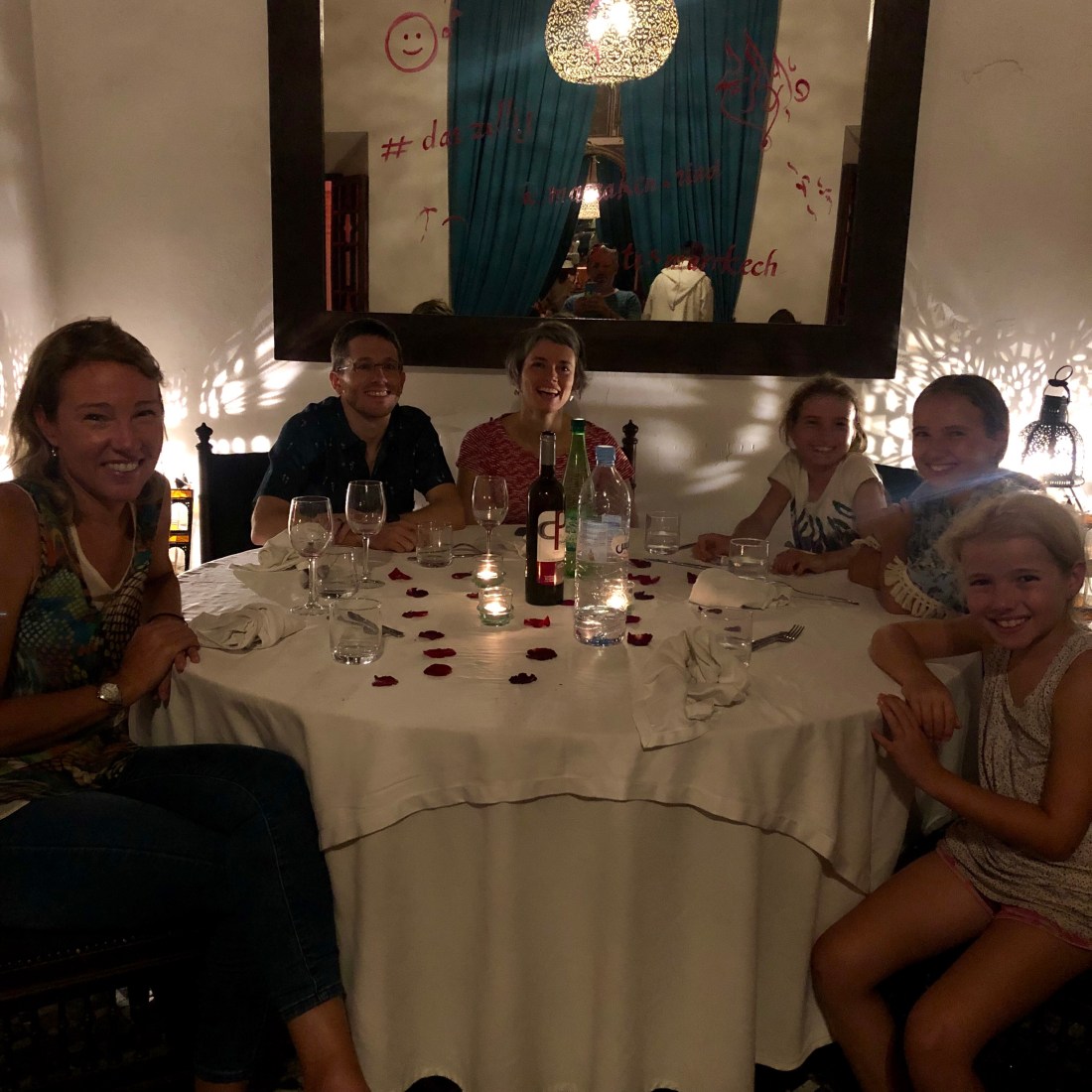 Here’s a summary of our three nights in Marrakesh. On the first night, we were surprised by our aunt and uncle. They were hiding behind their menus and sitting at the table of a fancy restaurant. It was such a lovely night to catch up on the past nine months.